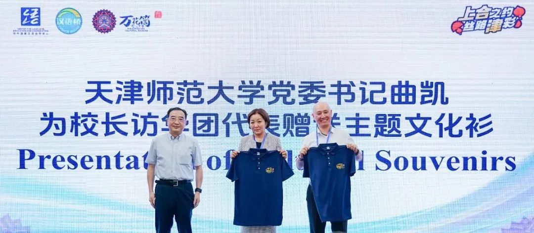 曲凯和李迎迎分别为团组校长和学生代表赠送纪念“万花筒”文化衫。