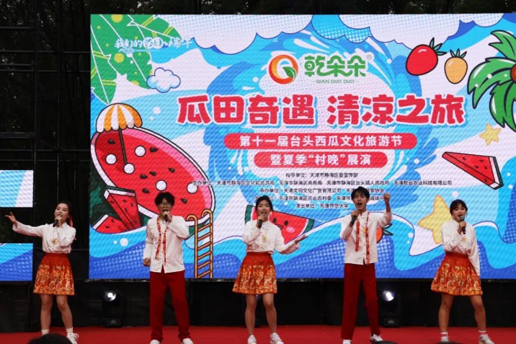 本站讯 5月31日恰逢端午佳节,beat365中文版官方网站组织师生赴静海区台头镇参加第十一届台头西瓜文化旅游节暨夏季“村晚”展演首场演出。区校相关领导嘉宾出席。来自音乐与影视学院、科学教育中心、体育科学学院共计70余名师生参与演出活动。