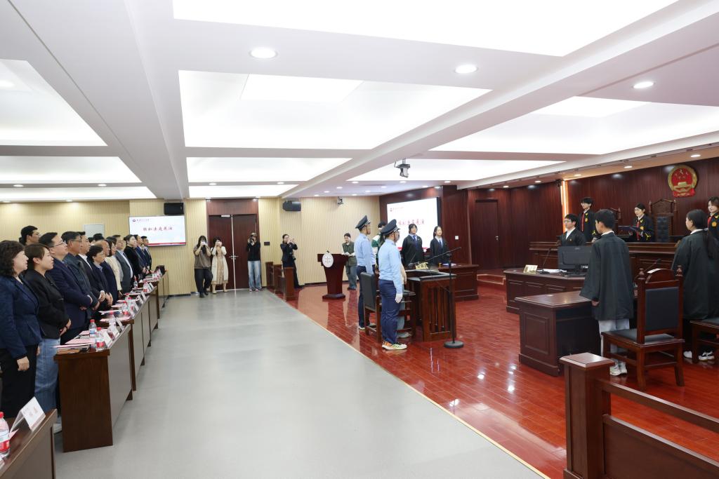 法学院习近平法治思想宣讲团学生成员演绎《玩笑的代价》校园欺凌情景剧。大中小学生代表以“校园故意伤害”案为蓝本开展了模拟法庭展演,西青区人民法院法官进行点评指导。