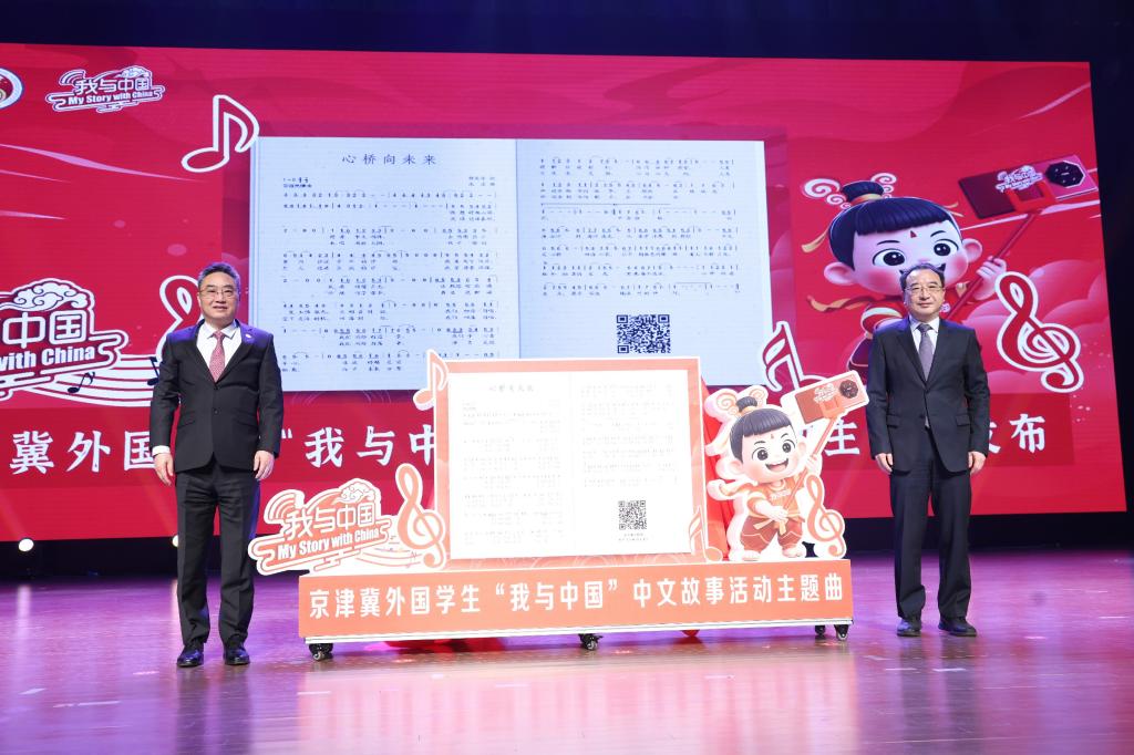 活动现场,史忠俊和beat365中文版官方网站党委书记曲凯共同为京津冀外国学生“我与中国”中文故事活动主题曲《心桥向未来》发布揭幕。