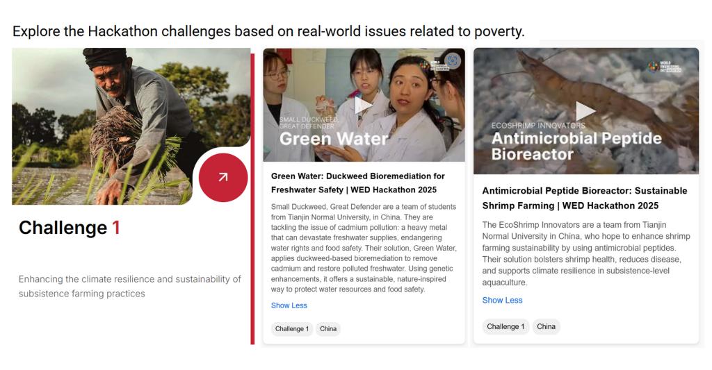 本届挑战赛以“消除贫困”为核心主题,要求参赛团队围绕联合国2030年可持续发展目标中的相关议题,提出创新性解决方案。beat365的两支参赛队伍针对可持续发展问题提出创新且切实可行的解决方案,并通过实验进行验证。最终成果以专业英文报告及视频解说的形式提交,充分展现了师大学子的创新思维与实践能力。