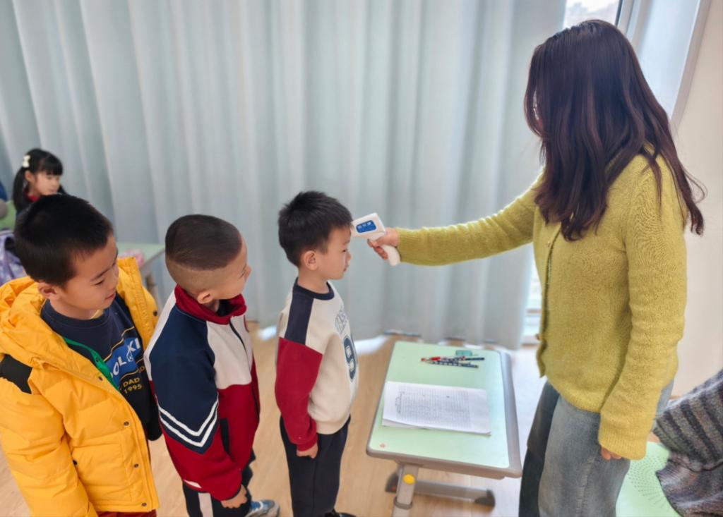 为确保学生入校安全,学苑派出所、张家窝交通队护学岗民警提早到达学校门前,再次检查防冲撞柱、道路隔离带等安全设施,确保正常运行,并与学校保安、值勤老师配合,疏导门前车辆,高效完成“快接闪送”。附校法治副校长、片区民警再次到校检查一键报警、校园监控等安保设备,详细了解学校新学期安全教育的相关需求,制定安全教育专题方案。学校食品安全检查工作领导小组与配餐服务企业召开现场办公会议,严格核查配餐员工的返岗情况,确保全员持有效健康证明上岗,追溯食材来源,审查加工流程,对企业提供的菜单逐一确认,保证每日配餐的营养搭配均衡合理,让学生吃到健康美味的放心餐。学校严格落实南开区教育局传染病防控工作的通知要求,组织物业保洁人员,对教学楼内外进行全面消毒,从源头降低传染病传播风险。学生入校前,通过班会、班级群推送资料等形式,开展传染病防控宣传,强化安全教育,学生入校后,严格执行晨午检制度,动态监测学生健康状况,筑牢师生健康防线。