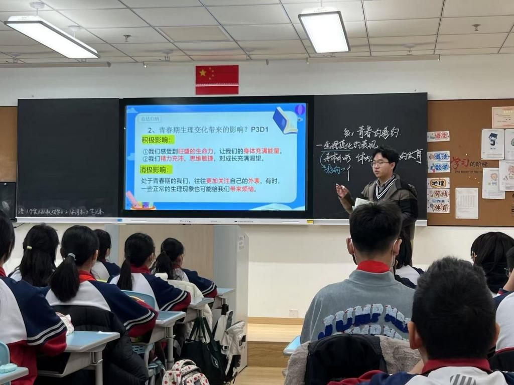 清晨,校长、班主任、值勤老师早早守候在校门口,以温暖的笑容和亲切的问候迎接每一位学生,传递真诚的关怀。为帮助学生尽快适应校园学习和生活节奏,学校通过主题班会、电子屏宣传教育、形式多样的体育活动等,帮助同学们做好新学期规划、激发青春动力。在课堂上,教师们精心设计“开学第一课”,在传授知识的同时,渐进式引导学生调整学习状态,激发学生奋进向上的学习劲头。南开区教师发展中心教研员李宗航、张亚亚莅临学校,开展听评课,悉心指导青年教师,助力他们快速成长。
