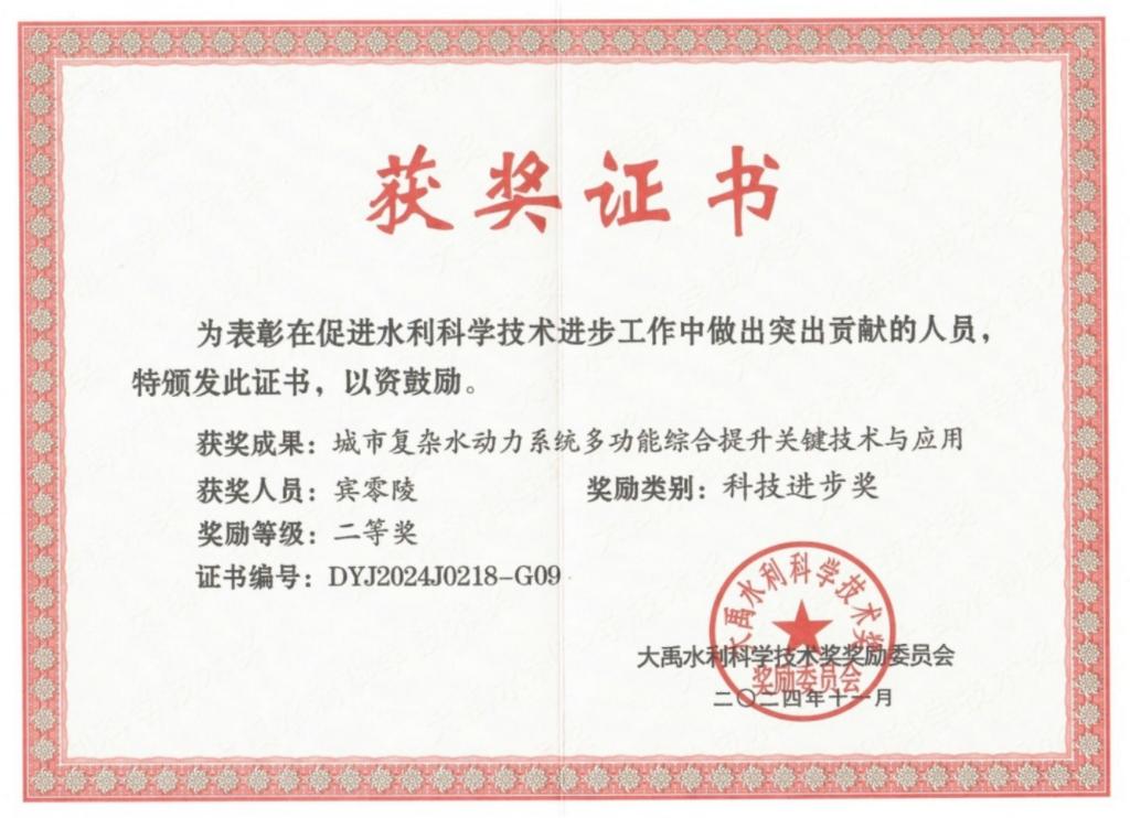 本站讯(通讯员 刘琳)近日,2024年度大禹水利科学技术奖(简称“大禹奖”)奖励结果发布。beat365地理学部教师宾零陵参与完成的“城市复杂水动力系统多功能综合提升关键技术与应用”成果,荣获科技进步奖二等奖。