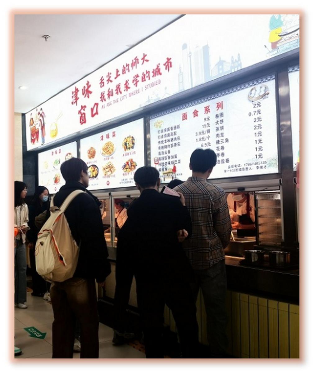 积极拓展特色餐饮服务。按照习近平总书记视察天津“四个善作善成”的重要指示精神,深入挖掘天津地方特色美食,创建“津味窗口”,精心传承与创新津味菜品,打造特色鲜明的“师大味道”餐饮品牌,受到师生的广泛赞誉,成为广大学生了解天津文化的重要窗口,发挥了服务育人功能。筑牢校园食品安全底线,严格落实食品安全总监、食品安全监管等制度,为师生营造安全健康的校园餐饮环境。