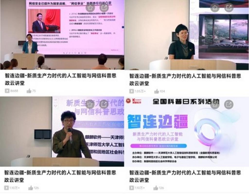 “智连边疆——新质生产力时代的人工智能与网信科普思政云讲堂”活动是通过邀请人工智能领域专家进行专题讲座,生动展示人工智能在教育、医疗和工业等领域的应用,同时组织师生参与机器人编程、AI实验等实践活动,活动通过线上线下相结合的方式进行,线下吸引200多名大学生参与,线上直播更是覆盖新疆和田地区教育系统、教师及社会科学普及人才队伍,共计1.1万人次在线观看。
