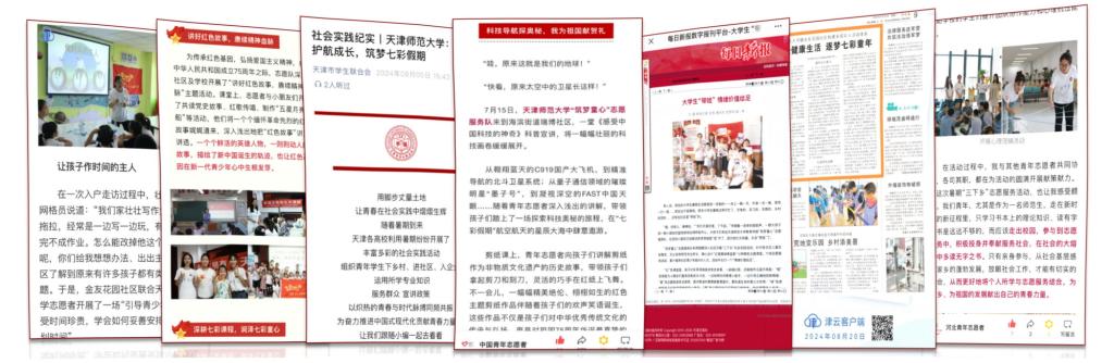 服务队面向团中央“伙伴计划”示范项目落地社区、共青团天津市城市基层组织改革试点开展问卷调查及深度访谈,提出一系列“让青少年与社区更亲近”的可行性建议,得到天津市河北区、西青区、宝坻区服务社区采纳。同时,服务队充分利用媒体平台传播实践故事与经验成果,截至目前,相关活动事迹已得到中国青年志愿者、中青校园、每日新报、你好天津、天津市学生联合会等官方媒体报道40余次,累计阅读浏览量达55000人次,充分展现了青年学子服务基层、挺膺担当的精神风貌。