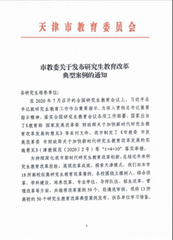坚持产教融合协同育人,获批9个天津市产教融合研究生工作站,通过资源共享、优势互补,实现校企共赢。扎实推进专业学位示范课和教材、案例库建设,获批1门全国艺术硕士教指委核心课程,6门全国艺术硕士专业学位研究生在线示范课程,2本教材入选全国教育硕士专业学位研究生首批推荐教材,39个案例入选中国专业学位教学案例中心入库案例,建设首批37个校级专业学位研究生教学案例库。锚定培养目标,搭建展示平台,遴选46项专业学位研究生优秀实践成果;加大赛事、项目驱动,先后获得中国国际“互联网+”大学生创新创业大赛金奖、“田家炳杯”全国教育硕士专业学位研究生教学技能大赛一等奖、全国应用心理专业学位研究生实践技能大赛一等奖、中国研究生数学建模竞赛一等奖、中国研究生创新实践系列大赛一等奖等一系列赛事奖项。