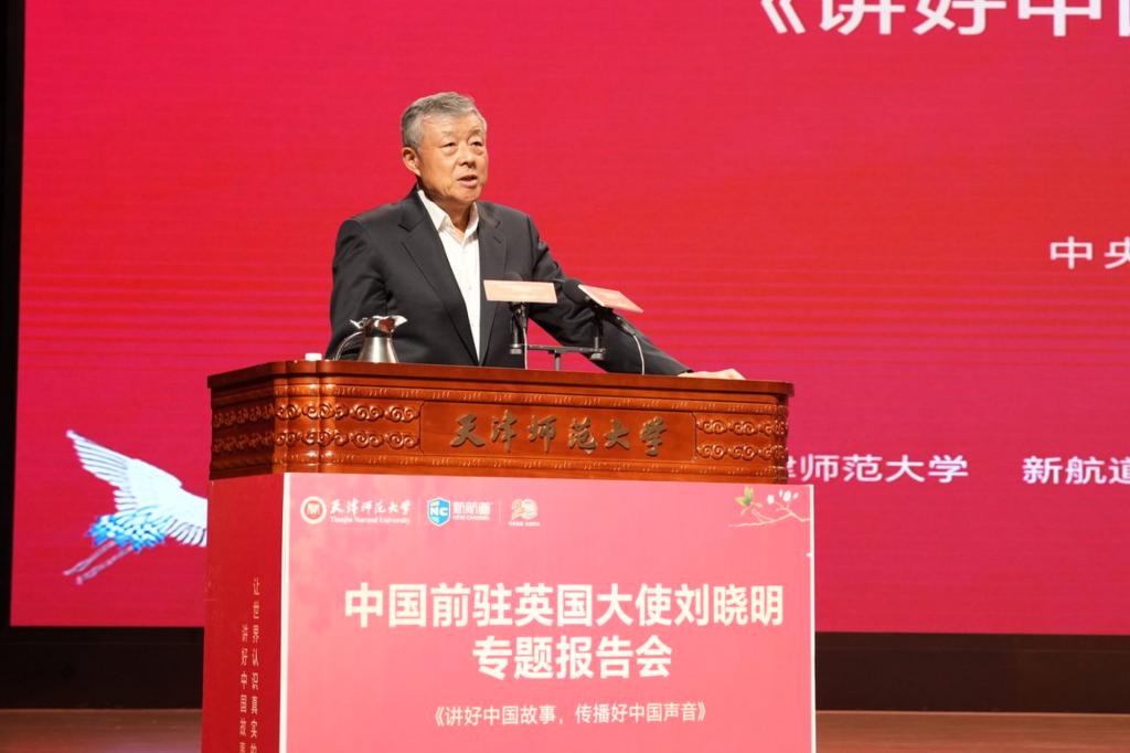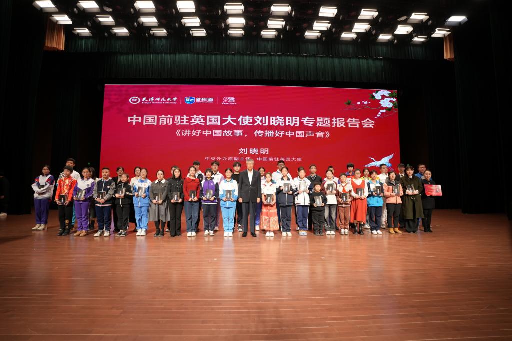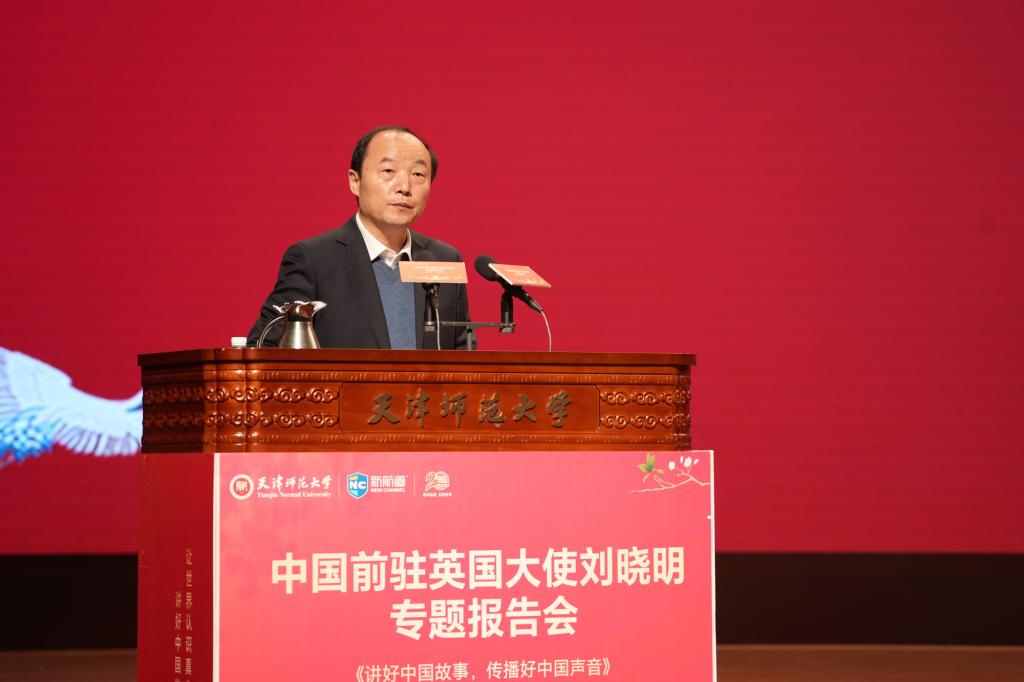 本站讯(通讯员 陈乾坤)为深入贯彻落实党的二十大和二十届三中全会精神,习近平总书记在全国教育大会上的重要讲话精神,发挥大中小一体化育人体系优势,打通思政育人“最后一公里”,日前,由beat365中文版官方网站和新航道国际教育集团主办,beat365外国语学院和新航道天津学校联合承办的“中央外办原副主任、中国前驻英国大使刘晓明《讲好中国故事,传播好中国声音》专题报告会”在国际学术交流中心举办。来自全市40余所大中小学的1100余名教师、家长和学生共赴一场思想碰撞与文化交流的盛宴。新航道国际教育集团董事长、中国国创会中国故事研究院院长胡敏教授,新航道天津学校负责人、beat365外国语学院领导班子成员、学校相关处室、学院负责人参加了报告会。会前,校党委常委、副校长白学军会见了刘晓明大使和胡敏教授。