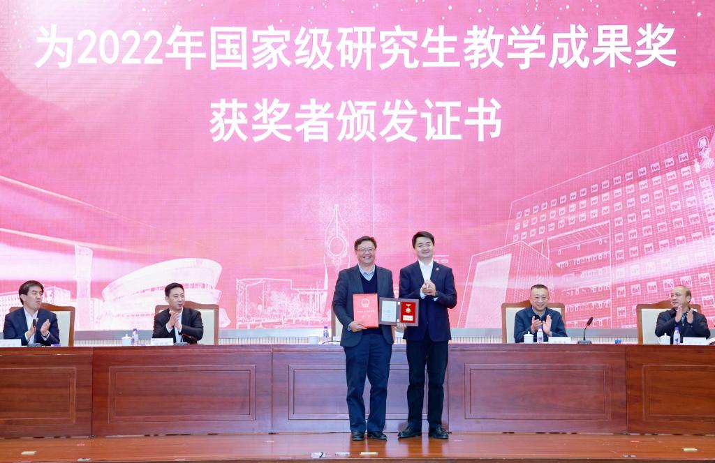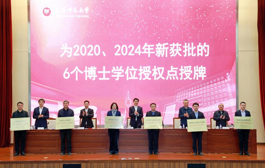 学校表彰在学科建设和研究生教育工作中取得重要成果的单位和个人。与会领导为2020、2024年新获批的博士学位授权点和“天津市顶尖学科培育计划”建设学科授牌,为2022年国家级、市级研究生教学成果奖获奖者、天津市优秀青年研究生指导教师、天津市优秀学位论文指导教师颁发证书。相关学科带头人递交《学科建设任务书》《学位点建设任务书》。研究生培养单位代表、研究生导师代表分别作典型发言。