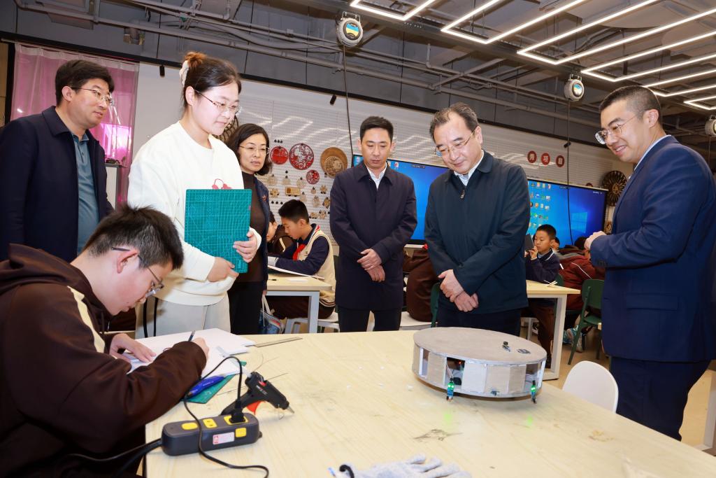 调研中,曲凯一行依次参观了英华实验学校英华屏、英华主题摄影展、E站通、实验小剧场、和顺书斋、创客教室以及少年科学院等多个教育教学场所,近距离感受英华实验学校聚焦学生综合素质,以满足学生个性特点与多样化需求为立足点进行多元化培养的育人理念。