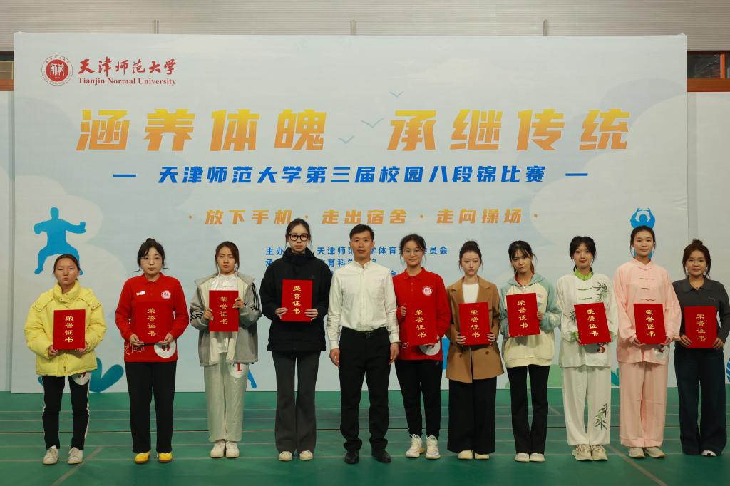 本站讯(通讯员吕天宇)为促进中华优秀传统体育项目的传承发展,推动全校师生健身与健康深度融合,10月31日,由校体育运动委员会主办的“beat365中文版官方网站第三届校园八段锦比赛”在体育馆一楼顺利举办。天津市健身气功协会主席刘俊荣应邀参加活动,校党委常委、副校长纪德奎出席并致辞,学工部、研究生院、校工会、体育科学学院相关领导出席开幕式。