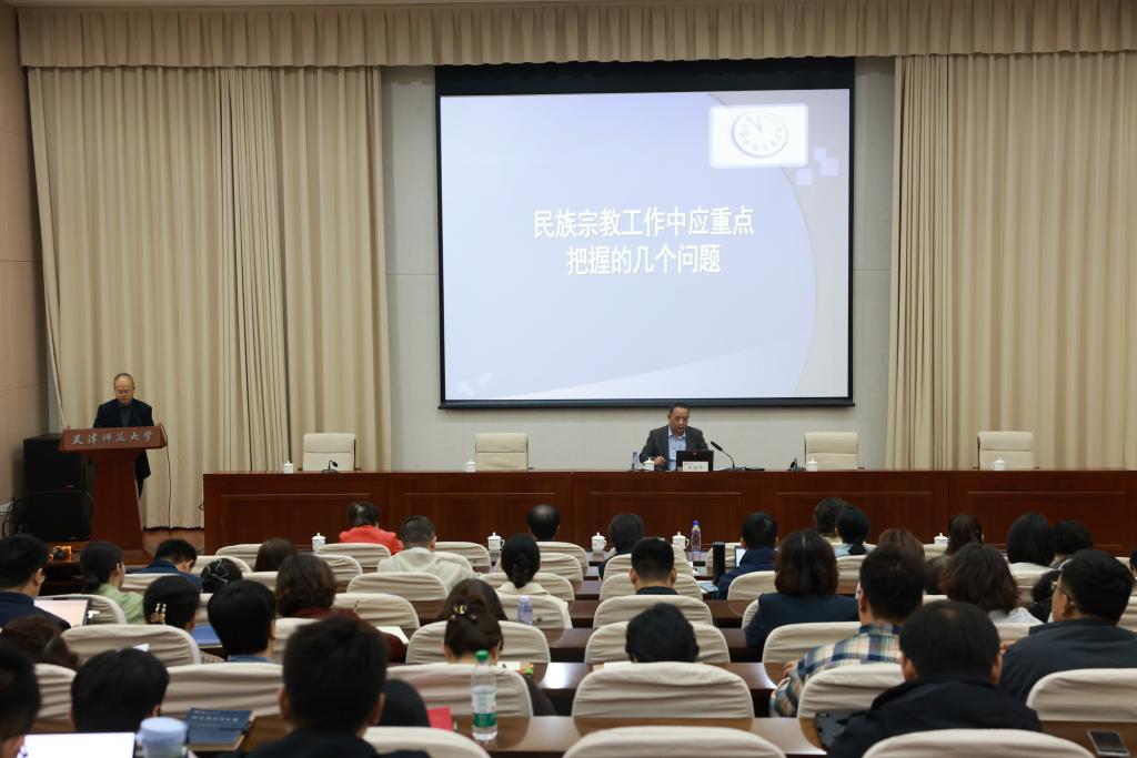 熊国华以“民族宗教工作中应重点把握的几个问题”为题,聚焦深入学习贯彻习近平总书记关于加强和改进民族工作的重要思想、关于宗教工作的重要论述,全面准确贯彻党的民族宗教政策,深刻认识领会我市民族宗教工作面临的形势任务,以铸牢中华民族共同体意识为主线推进新时代党的民族工作高质量发展和坚持我国宗教中国化方向,做好新时代党的宗教工作为目标,结合我市民族宗教领域特点和当下热点话题,就正确理解和运用党的民族宗教工作方针政策做好我市民族宗教领域工作进行深入指导、答疑解惑,内容详实,案例丰富,为全面准确把握党的民族宗教政策和提升beat365民族宗教工作干部的业务水平与能力提供了很好的指导作用。
