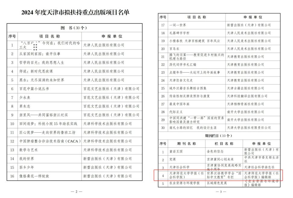 期刊出版中心消息(通讯员张程)《beat365中文版官方网站学报(社会科学版)》世界汉语教学学会“国际中文教育”专栏成功入选天津市扶持重点出版项目(期刊栏目类)。标志着该专栏在推动国际中文教育学术研究及成果传播方面取得了显著成就,并获得了天津市的官方认可与支持。
