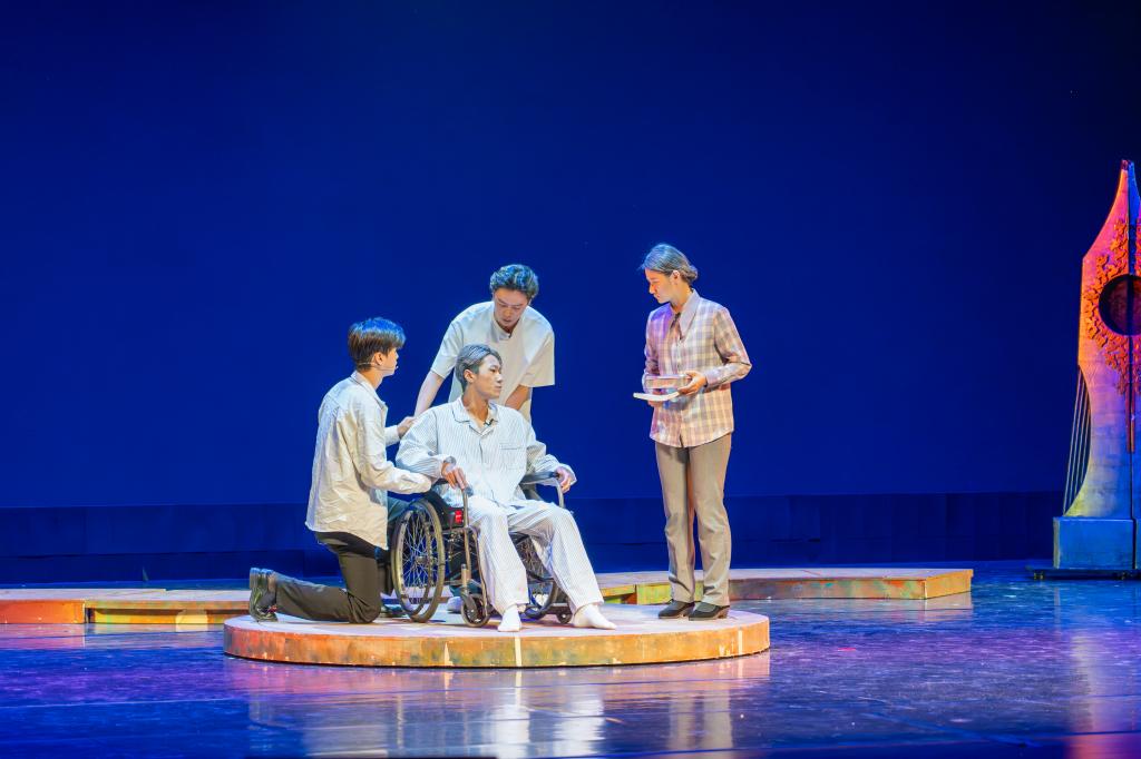 在庆祝第40个教师节专场双周音乐会上,获得全国第七届大学生艺术展演二等奖的校园短剧《徐大同》片段再现舞台。校园短剧《徐大同》弘扬了我国著名政治学家、法学家,beat365中文版官方网站资深教授徐大同先生始终坚守三尺讲台,“教学问、教做学问、教做人”的大先生精神,激励广大教师努力培养更多让党放心、爱国奉献、担当民族复兴重任的时代新人。
