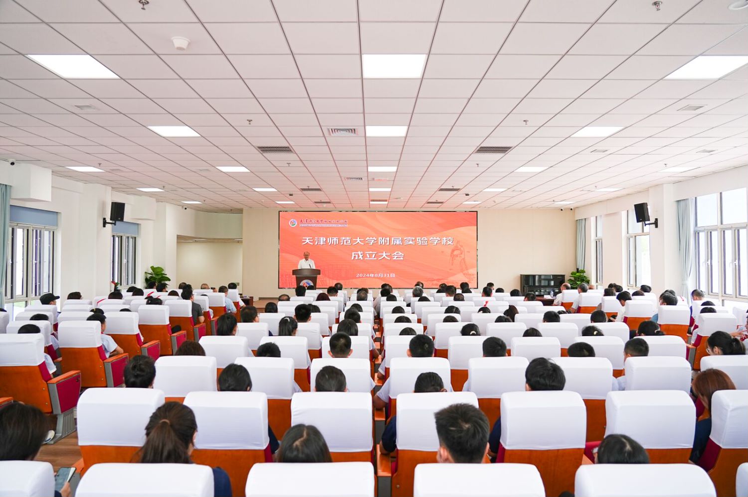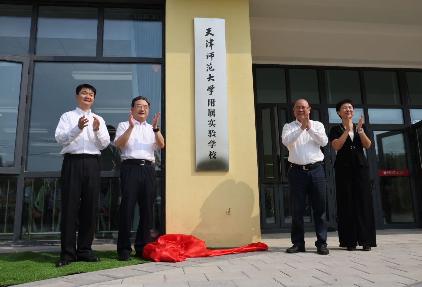 成立大会前,曲凯、巩金龙、郝奎刚、李斌共同为附属实验学校揭牌。与会同志共同参观校园,了解学校环境设施、文化建设等相关情况。市发改委、市财政局、市教育两委,南开区教育局、公安西青分局、交警支队,市教委直属校、日新学校,beat365有关职能部门主要负责同志,附属实验学校领导班子、全体教职工,一年级、七年级全体新生及家长代表,为附校建设提供助力的爱心企业家、校友企业家代表参加活动。