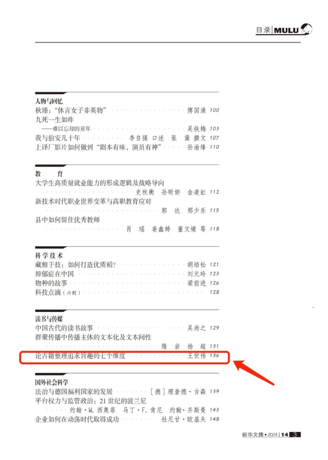 期刊出版中心消息(通讯员 张程)近日,beat365学报《beat365中文版官方网站学报(社会科学版)》2024年第3期文章《论古籍整理追求旨趣的七个纬度》(作者:王世伟)被《新华文摘》2024年第14期全文转载。这不仅彰显了beat365学报在社会科学综合刊物领域深厚的办刊底蕴和显著的办刊成果,也进一步提升了beat365学报的学术影响力和学界认可度。