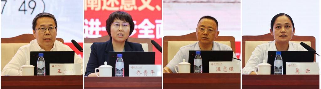 8月30日上午,经济学院王文治教授,政治与行政学院乔贵平教授、温志强教授、冀云教授分别围绕“高水平社会主义市场经济体制是中国式现代化的重要保障,高质量发展是全面建设社会主义现代化国家的首要任务”“党的领导是进一步全面深化改革、推进中国式现代化的根本保证”“国家安全是中国式现代化行稳致远的重要基础”“在发展中保障和改善民生是中国式现代化的重大任务”等主题作专题解读。