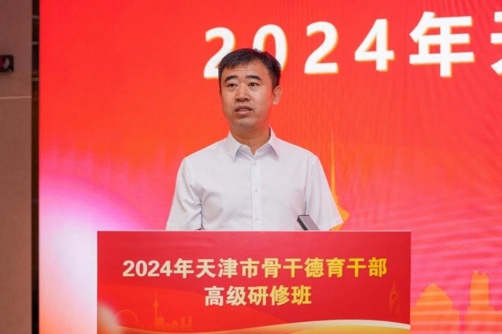 杨明指出,天津市骨干德育干部高级研修班是提升德育骨干教师队伍质量的重要培训,全体参训人员要提高政治站位,认真参训,切实提升德育工作能力本领。首场报告会上,杨明以深刻认识当前意识形态领域的总体形势所面临的风险挑战,深刻思考教育强国战略目标与巩固马克思主义意识形态主阵地的关系为切入,结合大中小学思想政治教育、日常管理、网络思政、心理健康教育中的真实工作案例,旁征博引,深入分析讲解,指导广大教师深刻思考在中国式现代化的征程中,坚持不懈用习近平新时代中国特色社会主义思想铸魂育人的艰巨责任和光荣使命。他强调,参训德育骨干要增强政治意识,全面贯彻党的教育方针,坚守“为党育人、为国育才”的初心使命,带好工作队伍,做好育人工作,努力培养德智体美劳全面发展的社会主义建设者和接班人。