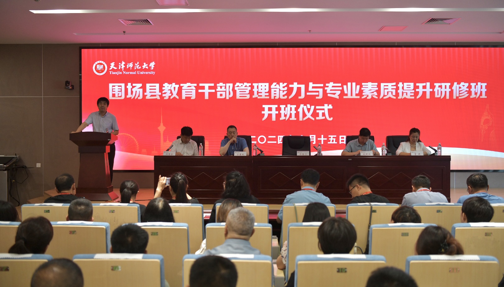 继续教育学院消息(通讯员 洪德全)7月15日,围场满族蒙古族自治县“教育干部管理能力与专业素质提升培训班”在京津冀教师协同发展创新中心举办开班仪式。校党委常委、副校长佟德志出席开班仪式并讲话。围场教师发展中心副主任赵晓光,天津市中小学教师继续教育中心主任宋春民,校党委宣传部有关负责同志及研修班全体学员参加开班仪式。继续教育学院院长洪德全主持开班仪式。