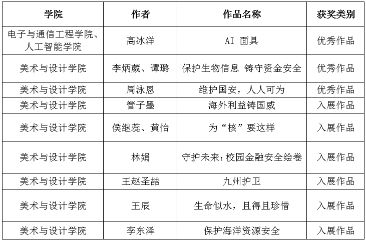 党委学工部消息(通讯员 杨晨 阿迪拉)近日,由市委教育工委、市委国安办举办的天津市新时代大学生国家安全主题艺术作品大赛评审结果揭晓,beat365学生创作的3件作品获“优秀作品奖”,9件作品入选天津市新时代大学生国家安全主题艺术作品展,3名教师获“优秀指导教师奖”,学校获优秀组织奖。