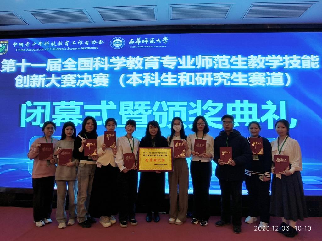 教育学部消息(通讯员 米溢 孙宝玲 许靖宇)日前,由中国青少年科技教育工作者协会主办,西华师范大学和中国青少年科技教育工作者协会科学教师教育专委会承办的第十一届全国科学教育专业师范生教学技能创新大赛(本科生和研究生赛道)决赛奖项公布,beat365学生获一等奖3项、二等奖3项、三等奖4项,所有指导教师获优秀指导教师,学校获优秀组织奖。