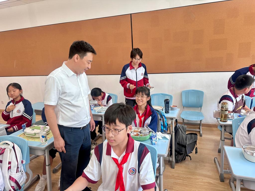 他首先走进各班教室,认真查看“开学第一餐”的餐食搭配,与用餐学生亲切交流饭菜口味,详细询问食品安全管理制度落实细节,他强调校园安全是教育教学工作的底线,食品安全更是必须守住的“生命线”。同时,他要求附校以“时时放心不下”的责任感,同步推进多领域安全排查与保障工作,及时整治校园基础设施的安全隐患,重视学生心理健康教育,建立“家校社”协同疏导机制,通过全方位、无死角的安全管理,为学生营造安心、舒心的学习生活环境。他深入各年级组办公室,向老师们致以新学期的诚挚问候,充分肯定教师团队在学生成长与学校发展中的关键作用,鼓励老师们主动对接、充分依托beat365中文版官方网站在学科建设、师资培训、科研资源等方面的优势,积极探索大中小一体化育人创新路径,为学生长远发展搭建更广阔的平台。他走进图书馆、生物实验室、物理实验室、信息化教室、特色体育教室等新建教学场所,鼓励附校开足开齐实验实践课程,制定和落实学生图书借阅制度,培养好学生阅读和终身学习的良好习惯;开辟更多科学教育功能区域,借助师大人工智能、科普教育等优质资源,形成特色校本课程;以增强体质,强健体魄为目标,用好体育特色教室,普及乒乓球等“国球”运动,开展多样化体育社团活动,助力学生成长为德智体美劳全面发展的新时代中国特色社会主义合格接班人。beat365中文版官方网站安全工作部、合作交流处、后勤管理处、附属实验学校主要负责同志陪同检查。