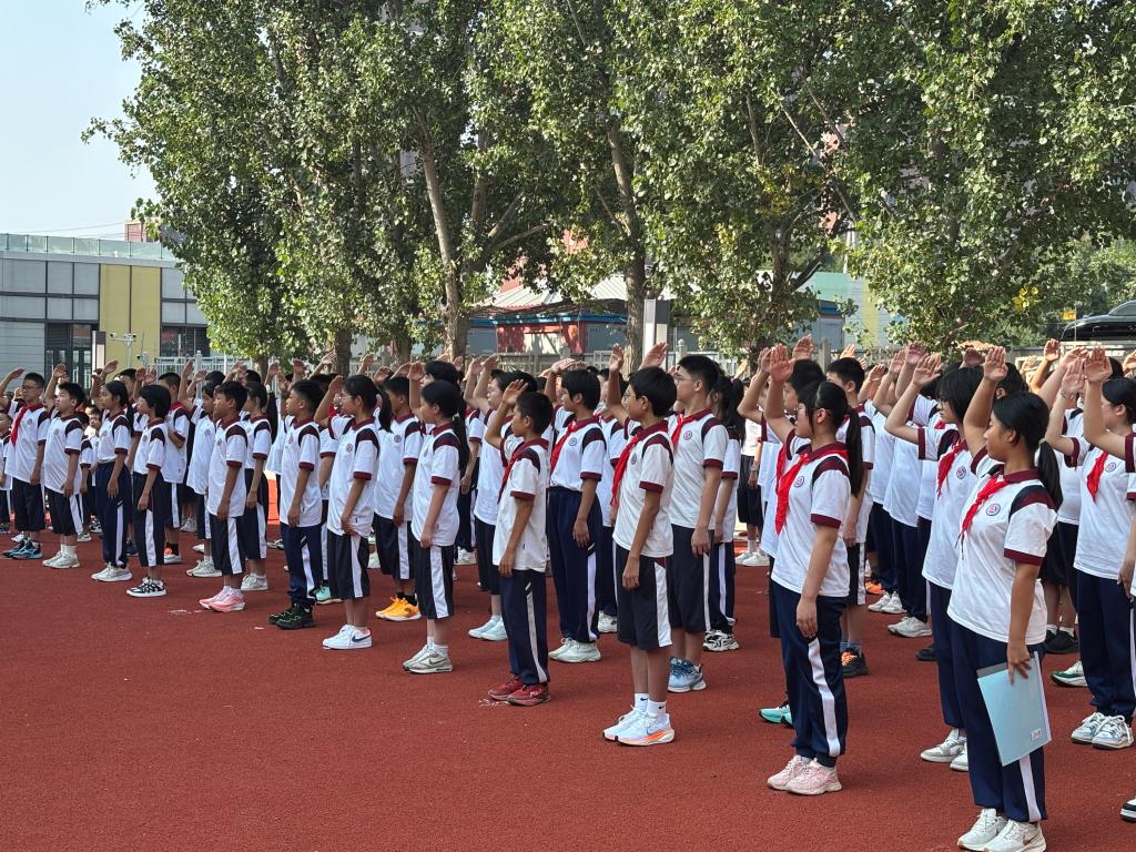 上午九时,以“以史为鉴守初心,以行致远启新程”为主题的开学典礼在操场上隆重举行。在庄严的升旗仪式中,全校师生高唱国歌,以昂扬姿态开启新学期征程。八年级学生代表李沐阳以参观革命烈士纪念馆的感悟,呼吁同学们铭记抗战胜利80周年的历史,肩负时代责任;新生代表朱舸则以校训“勤奋善学,厚德树人”为指引,倡议将爱国情怀融入日常行动。教师代表刘晨旭寄语学生做“眼里有光、肩上有责、心中有暖”的追梦者,校长邓文娟更从理想信念、品德修养、勤奋学习三个维度出发,鼓励师生将个人成长与国家发展紧密相连。这场充满仪式感的典礼,充分展现了附校师生以昂扬的斗志开启新征程的决心和力量。