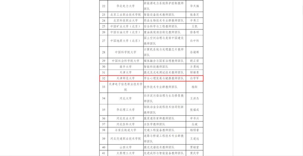 本站讯(通讯员 于海涛)9月5日,教育部发布了第三批“全国高校黄大年式教师团队”创建示范活动认定名单和第四批“全国高校黄大年式教师团队”创建示范活动入围名单,beat365“学生心理发展与健康教师团队”入选“全国高校黄大年式教师团队”创建示范活动认定名单。