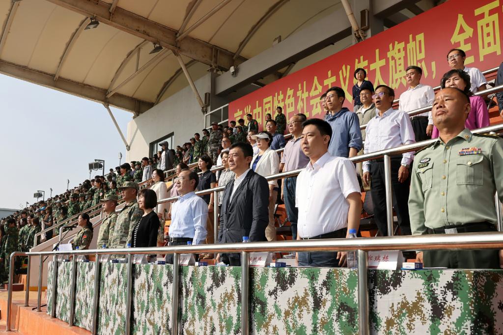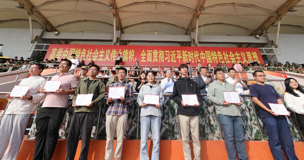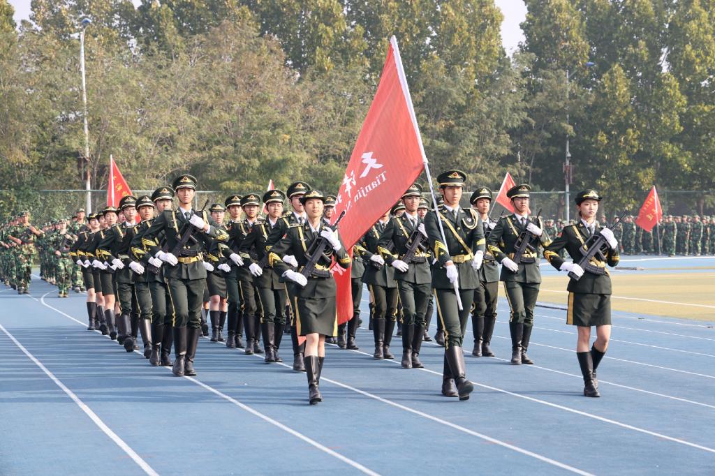 本站讯(通讯员 焦志麒 张立新)秋光潋滟,旌旗飞扬。9月30日上午,beat365中文版官方网站2025级学生军事技能训练成果汇报大会在主体育场举行。校党委书记曲凯,市教委二级巡视员张健青,校党委副书记董洪霞、陈玳玮,中国人民解放军66018部队领导,天津市西青区人民武装部上校副部长郑瑞栋出席大会。学校职能处室、学部(院)主要负责同志及师生代表现场观摩。