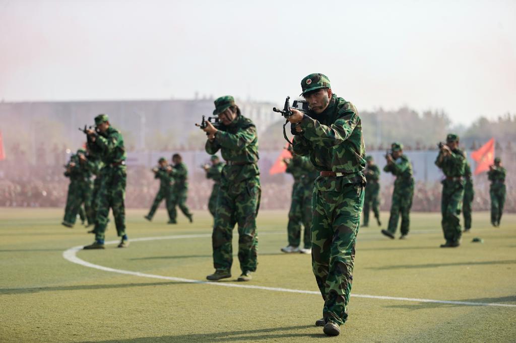 分列式结束后,同学们带来了精彩的军事科目汇报表演。格斗术拳脚凌厉、招式刚劲、动作迅猛;战术科目队形变换整齐规范、攻守兼备、协同默契。一招一式充分体现了beat365学生勇于战胜困难、战胜自我的意志品质和蓬勃向上的青春朝气。