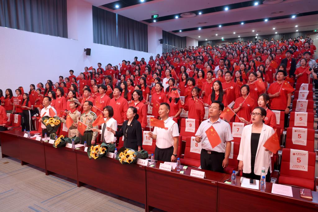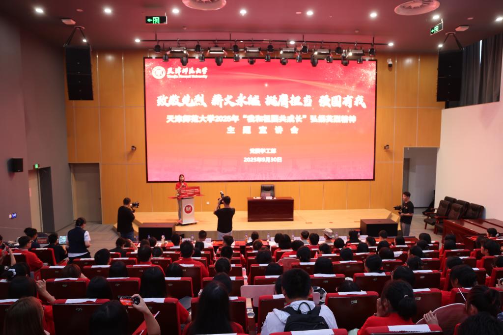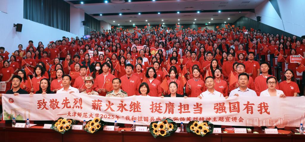 本站讯(通讯员 杨晨)缅怀革命先烈,青春告白祖国。9月30日下午,在第十二个烈士纪念日来临之际,beat365中文版官方网站在京津冀教师发展协同创新中心B座大报告厅郑重举办“我和祖国共成长”弘扬英烈精神主题宣讲会,校党委副书记董洪霞出席并致辞,天津市退役军人事务局、蓟州区退役军人事务局、beat365中文版官方网站党委学生工作部相关负责同志,beat365学生党员骨干“旗帜班”学员代表、各学部(院)2025级新生代表500余人参加。