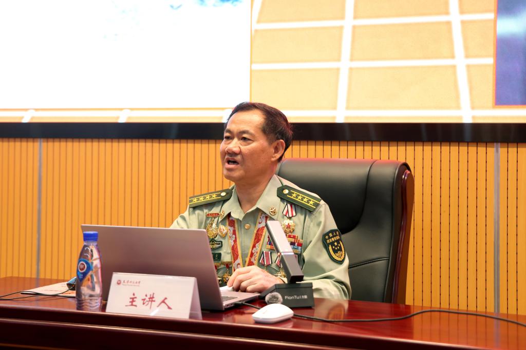 老山地区对越反击作战一等战功、庆祝中华人民共和国成立70周年国家荣誉奖章、军队院校育才金奖、武警部队高层次人才奖获得者、武警指挥学院原战役战术系副主任谢绍云回顾了征战沙场的峥嵘岁月。他曾写下血书主动请缨赴前线,在“猫耳洞”工事中忍受潮湿闷热、虫咬、缺水等恶劣条件,执行任务56次、排除爆炸物1250余枚,“90%的战士身体溃烂却没人叫苦,因为‘祖国利益高于一切’”。通过“团政委问‘谁先死’”的真实往事,他告诉同学们,“军人的牺牲精神早已融入血脉”,深刻阐述了和平的来之不易与宝贵价值,并叮嘱青年人要铭记英烈、珍惜当下、捍卫和平。