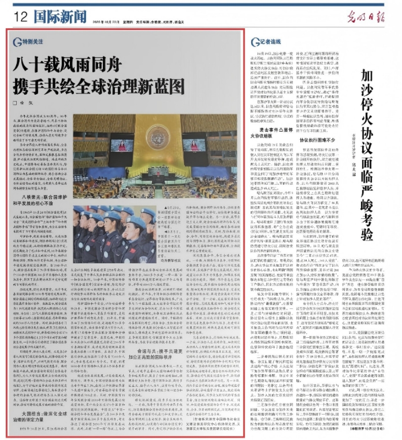 10月23日《光明日报》刊发了校党委书记曲凯署名文章《八十载风雨同舟 携手共绘全球治理新蓝图》。