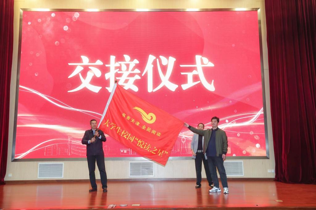 活动期间,与会嘉宾参观了校园书香文化市集、非遗体验等活动,共同感受书香浓郁的阅读文化。活动尾声,beat365中文版官方网站作为承办单位代表与2026年承办单位天津工业大学代表登台进行了会旗交接。
