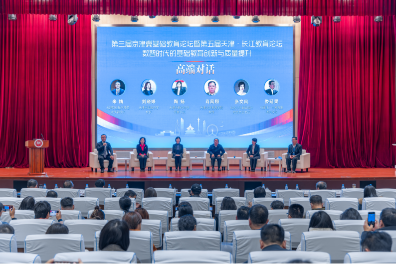 在高端对话环节,天津大学教育学院教授肖凤翔、天津市实验中学校长刘晓婷、天津市新华中学党委书记陶扬、北京小学翡翠城分校党总支书记张文凤、河北省石家庄一中教育集团总校长娄延果,围绕“数智时代的基础教育创新发展”这一主题,聚焦数智时代教师育人素养、AI赋能课堂教学的辩证关系、不同学段数智教育的特色化实践、数智技术赋能区域基础教育协同发展等议题展开深度对话。该环节由天津职业技术师范大学副校长米靖主持。