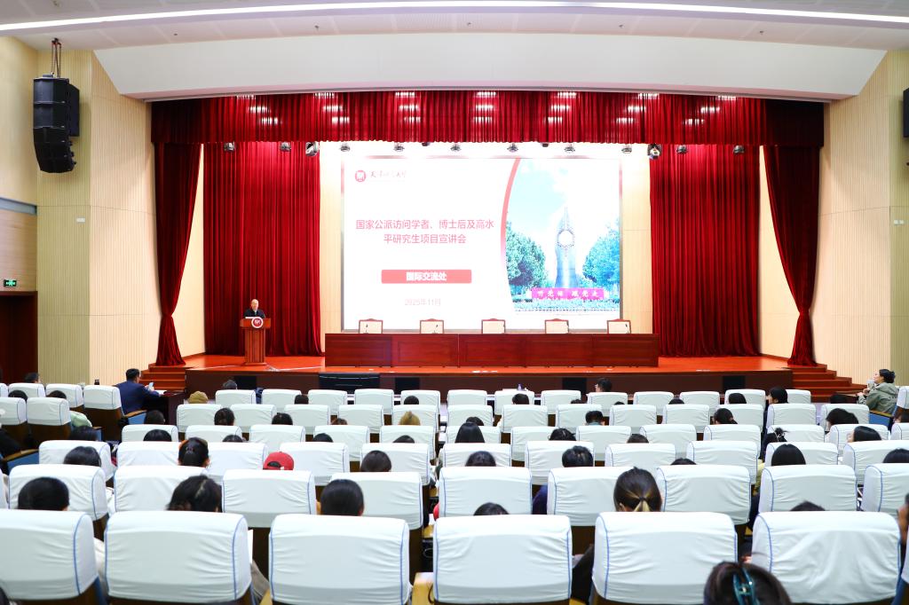 本站许(通讯员 毛雁)11月13日,为深入贯彻落实学校第九次党代会精神,全面推进特色鲜明世界知名一流师范大学建设,切实提升师生国际视野和全球竞争力,学校面向全校师生举办国家公派出国项目宣讲会,鼓励师生立足中国、放眼世界,为学校高质量发展聚力赋能。beat365党委常委、副校长白学军教授出席宣讲会并做动员讲话,各学部(院)师生共400余人参加。