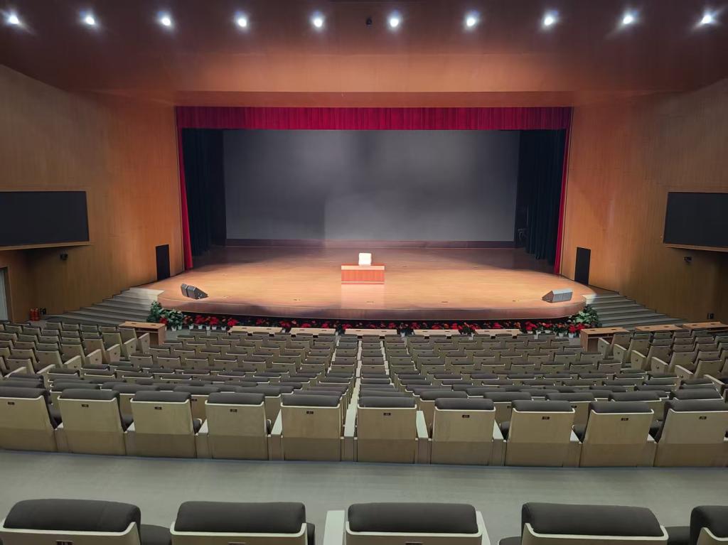 国际学术交流中心(综合活动展示中心)坐落于图书馆西侧,建筑面积8700 余平方米,配套专业排练厅、化妆间、道具存储间。在承载能力上,1048 个观众席位科学分布,一层 687 座、二层 361 座,无论是千人规模的大型活动,还是精致的小型交流,都能在此找到完美呈现的方式,确保每一位参与者都拥有良好体验。