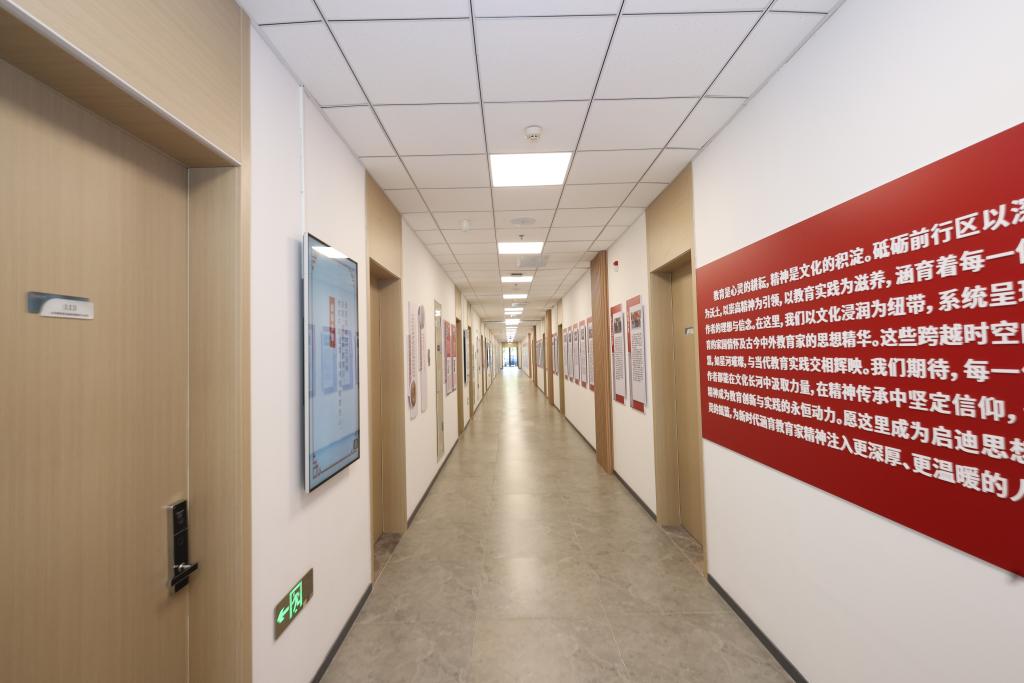 中心综合运用现代信息化技术,融合墙体展示、多媒体影像系统、声光效果于一体,着力打造沉浸式、互动性的实践浸润与思想教育阵地。中心系统展示了党的十八大以来习近平总书记关于教育的重要论述和教育家精神的生成逻辑、核心要义与时代价值,详实记录了中华文明赓续发展的伟大征程中,一代代教育家传承发展厚重师道文化、为国家教育事业奉献毕生心血的光辉历程与师者丰碑,生动呈现了天津市在弘扬教育家精神方面的积极作为与显著成效,搭建了教育家精神全方位展示数据库平台。