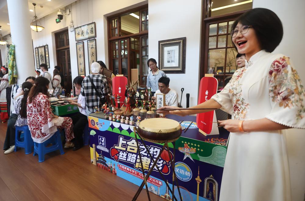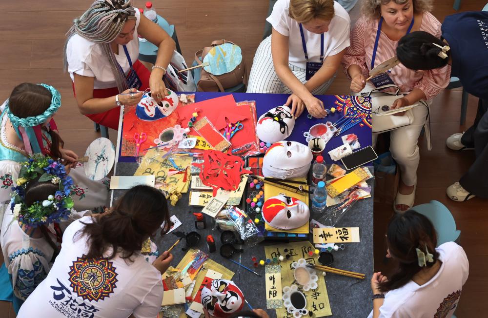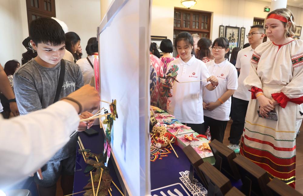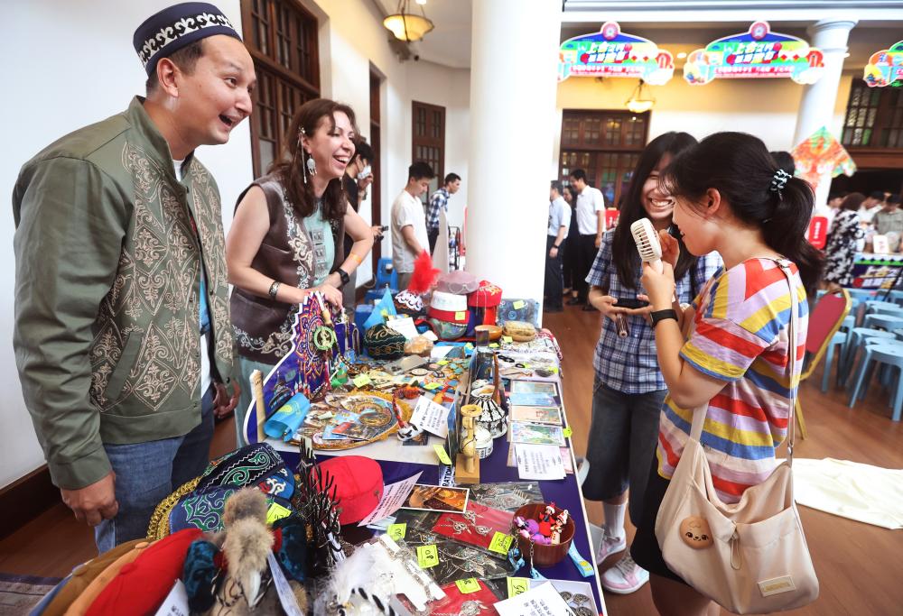 活动现场,上合组织多国的歌舞串烧富有异域风情,武术表演者动作刚劲有力、展现出中国武术的独特魅力,民族乐器演奏余韵悠长,一个个节目接续登场,将现场气氛推向一个又一个高潮。文化市集特设“和美中国”“河海津韵”“上合风采”三大展区,学生们体验京剧艺术、观赏面塑作品、打卡上合组织国家文化元素展示区,共赏文明交流互鉴之美。“就像万花筒,多种文明通过交融互鉴,更加焕发光彩。”乌兹别克斯坦学生爱华的话道出了在场者的心声。