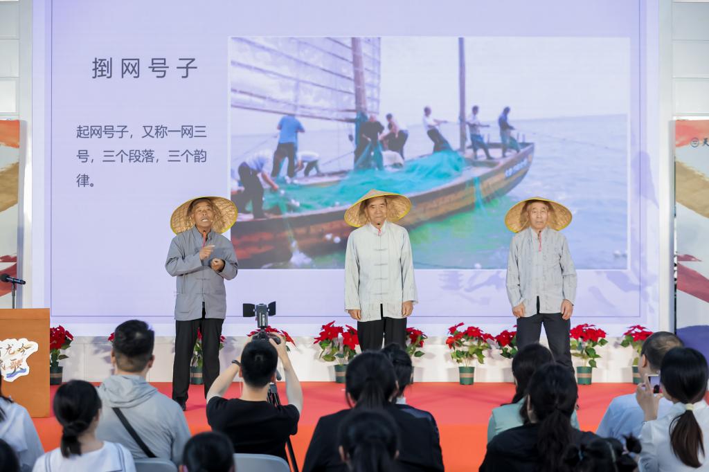 活动现场,汉沽80岁的渔民赵加岺,携刘翠祥、刘翠波兄弟带来《捯网号子》。粗犷原始的号子声,如同一阵阵浪潮,仿佛将听众带回到波涛汹涌的险境之中,让人感受到渔民们在大海上劳作时的艰辛与豪迈,也展现出天津沿海地区质朴的生活风貌。