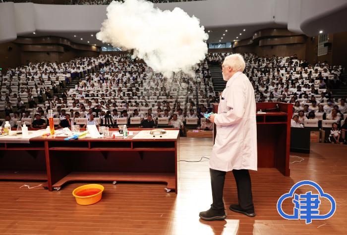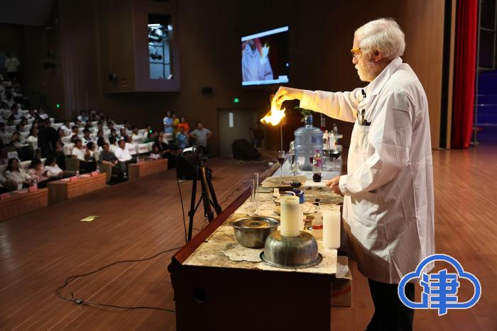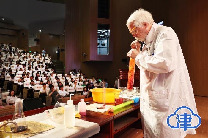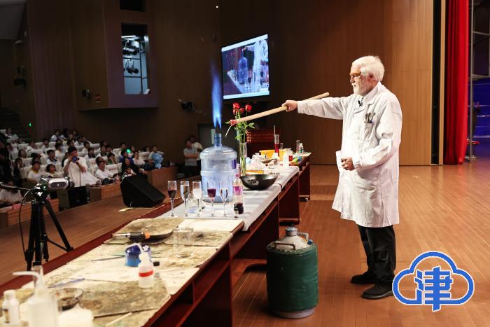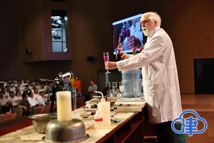 喷“水”可点燃蜡烛,葡萄色的碳酸饮料能变成“水”“牛奶”和“酸奶”,两杯无色透明液体倒在一起“秒变”蓝色液体……5月13日,beat365中文版官方网站国际学术交流中心内不时传来“哇”“怎么‘变’的”“太神奇了”等惊叹声,以“化学赋能创新,科技筑梦强国”为主题的beat365中文版官方网站第七届化学科技节在这里开幕,beat365中文版官方网站化学科普指导专家、许多中国孩子眼中的“化学魔法师”、来中国从事科研相关工作近30年的英国化学家戴伟(David G Evans)在开幕式上进行了化学科普实验展演,把实验室“搬上”舞台,带领现场来自全市20余所大中小学的千余名师生感受科学的魅力。