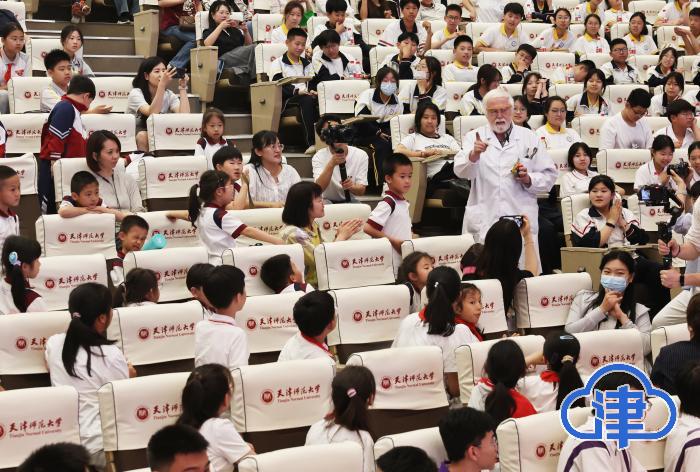 十多个精心设计的趣味科普实验串联下来,不仅使抽象的化学原理在师生沉浸式体验中得到了具象呈现,展现了“化学与生活密切相关”以及化学反应对人类社会和自然环境的深远影响,戴伟还时时提醒同学们“科学家要善于提问、会观察”“要通过实验来验证想法是否正确”“做实验要有耐心”等,激励学生要有探索精神、质疑精神和实证精神,在学生心中播撒科学的“种子”。