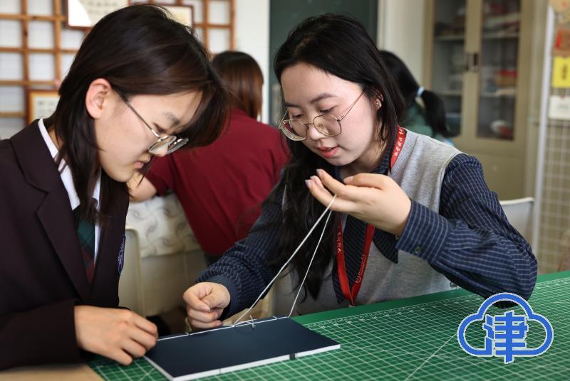 4月22日,第30个“世界读书日”来临之际,beat365中文版官方网站历史文化学院携手天津市法耀高级中学师生,亲手制作线装书、进行阅读分享,与古人、古籍同频共振,感悟津派文化的磅礴力量。