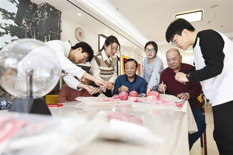 师大师生党员们走进养老院,根据老人认知特点精心挑选物理实验项目,耐心讲解实验原理,手把手协助老人操作实验器材,引领老人观察实验现象并深入思考其中逻辑。通过趣味互动充分锻炼老人思维与动手能力,助力预防认知障碍疾病,全力为老人打造充满活力与智慧的晚年生活,探索高校与社会机构合力助老新模式。