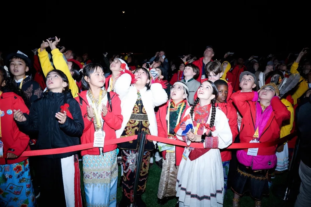 仪式上,各国小选手们拿起手中的拼图,合力拼出象征着团结与梦想的“汉语桥”logo,正式启动本届“汉语桥”世界小学生中文秀。随后,选手代表与天师大师生共同观看了汉语桥欢迎仪式无人机灯光秀,寓意着“放飞梦想,点亮未来”。