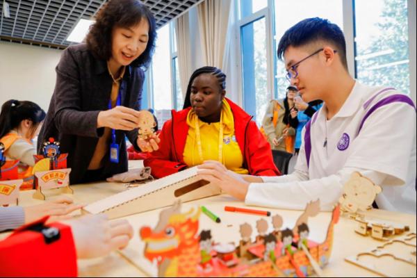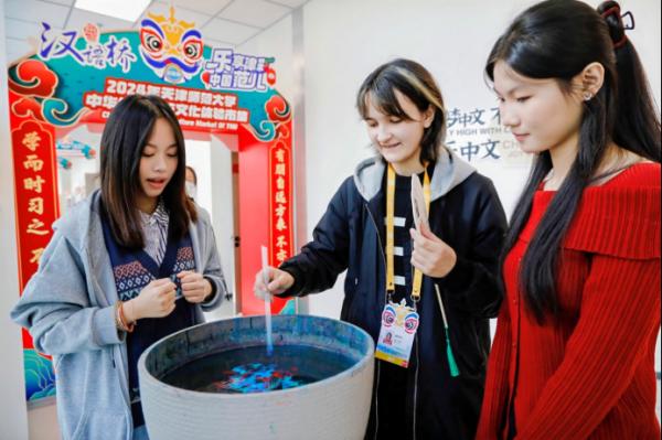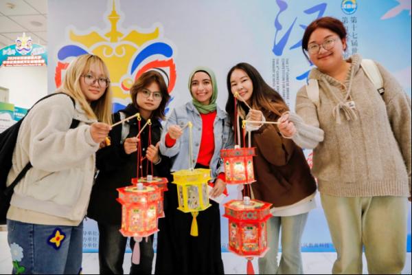 10月19日,第十七届“汉语桥”世界中学生中文比赛的选手们在紧张的比赛之余,参加了丰富有趣的校园体验活动,包括非遗香囊、漆扇工艺、花钿艺术、剪纸艺术、走马灯等文化体验项目。