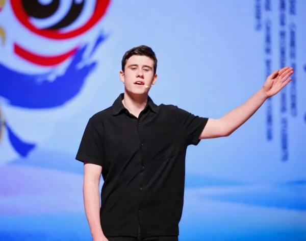 来自新西兰的罗大翰林为大家带来了创意脱口秀《土味情话》。“我从网上看到了脱口秀段子,非常喜欢,于是综合我喜欢的段落编写了脚本。”他希望通过自己的表演给大家带来欢乐。
