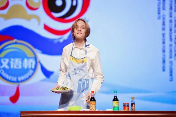 来自卢森堡的马伟则把中国菜搬上了舞台,现场为大家制作了一道拍黄瓜。“我很喜欢做中国菜。在家里的时候,我会做番茄炒鸡蛋、拍黄瓜等给家人吃。这次来到中国,我品尝了天津的煎饼果子、北京的炸酱面和烤鸭,都非常好吃。”