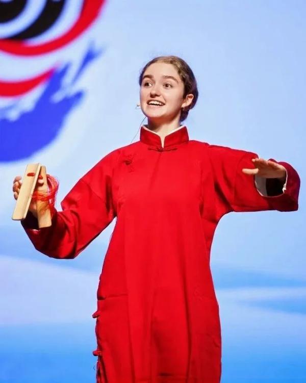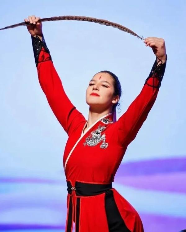 《西游记》也给美国选手陆怡月带来了创作灵感,她带来了一支表现孙悟空故事的舞蹈。演出中,陆怡月身着龙纹红裙,手中拿着雉鸡翎,每一个动作都格外有“范儿”。“孙悟空是中国独有的神话人物,他勇敢无畏。这支舞蹈表达了当我们在生活中遇到困难时,要永不言弃,勇于追逐梦想。”